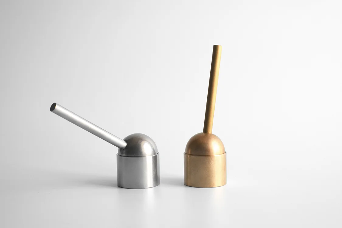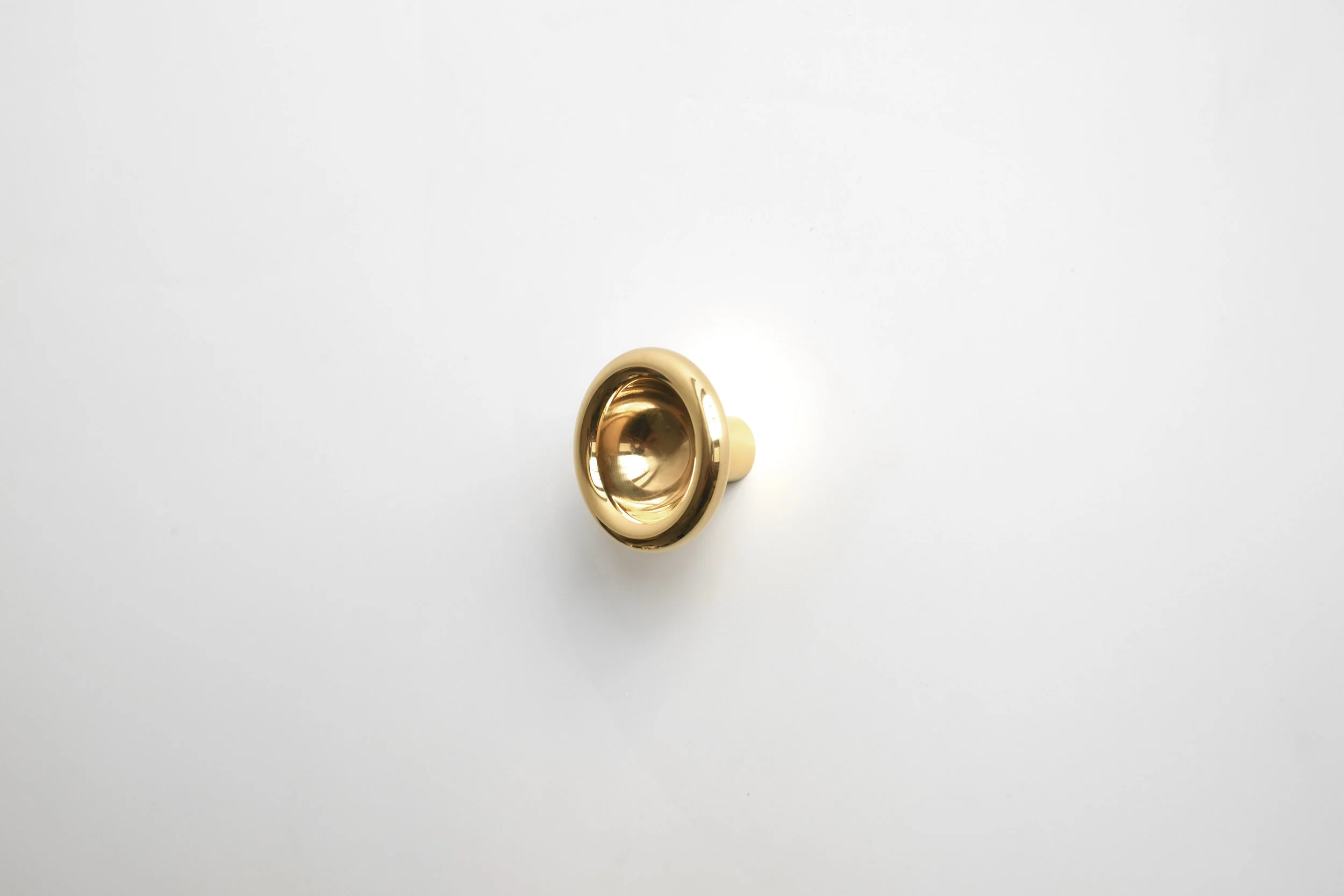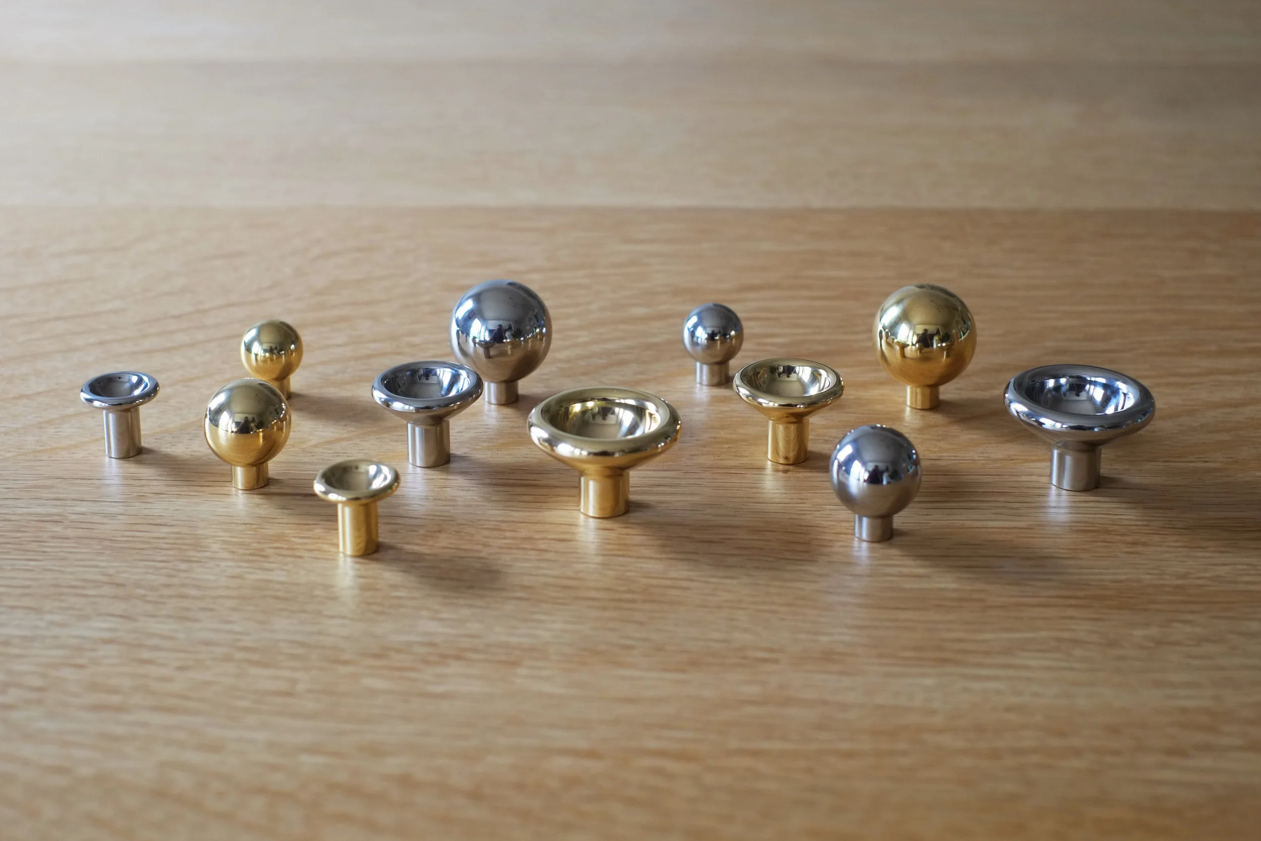 Machined from solid brass and stainless steel, the designs are mirror polished to highlight their simple forms and to reflect the environment around them. The Concave Knob creates an especially satisfying experience as the interior surface cradles your thumb. It is complemented by the perfect simplicity of the spherical Convex Knob.