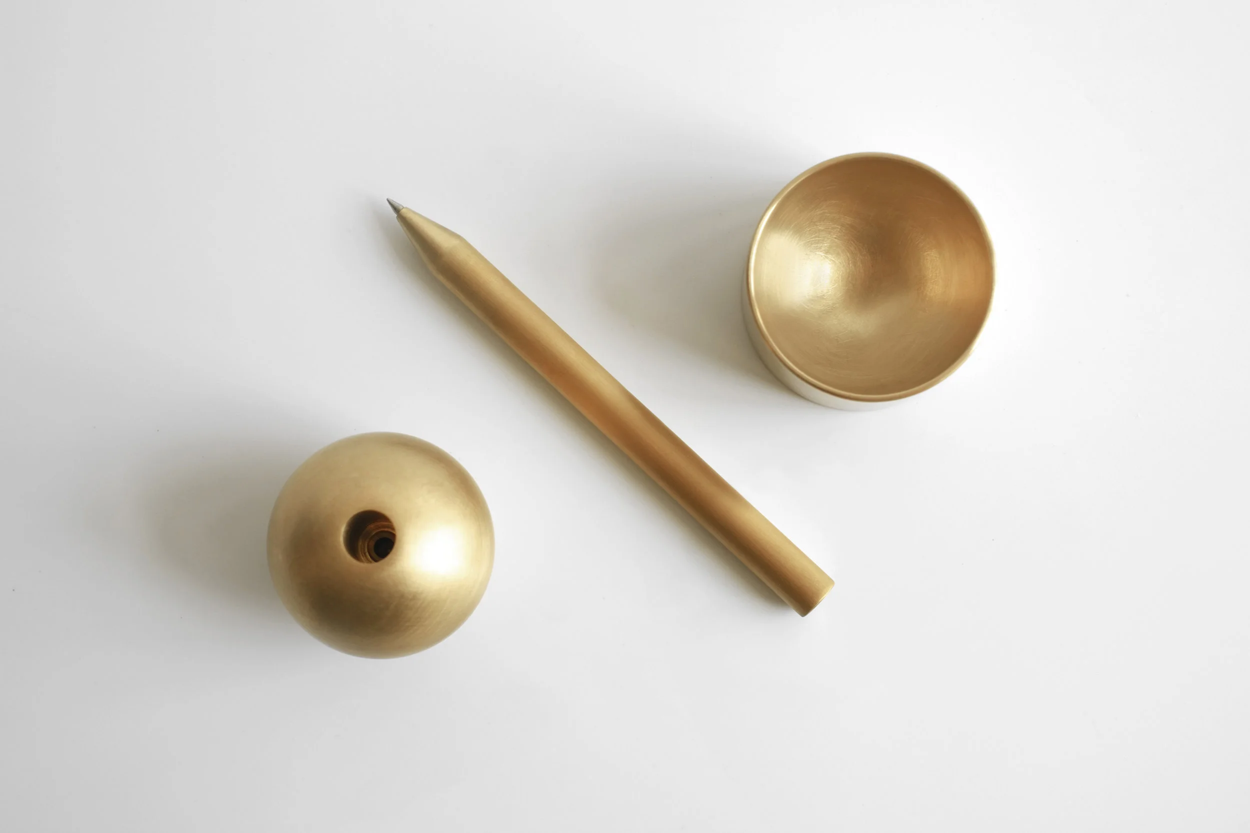This pen was inspired by the ball and socket connection of two objects sitting on our designer’s desk. He couldn’t stop playing with them, so we adopted the forms into a tool for everyone’s enjoyment. Use the pen to pivot the ball within its base and satisfy your ADD or position the pen just right to calm your OCD.